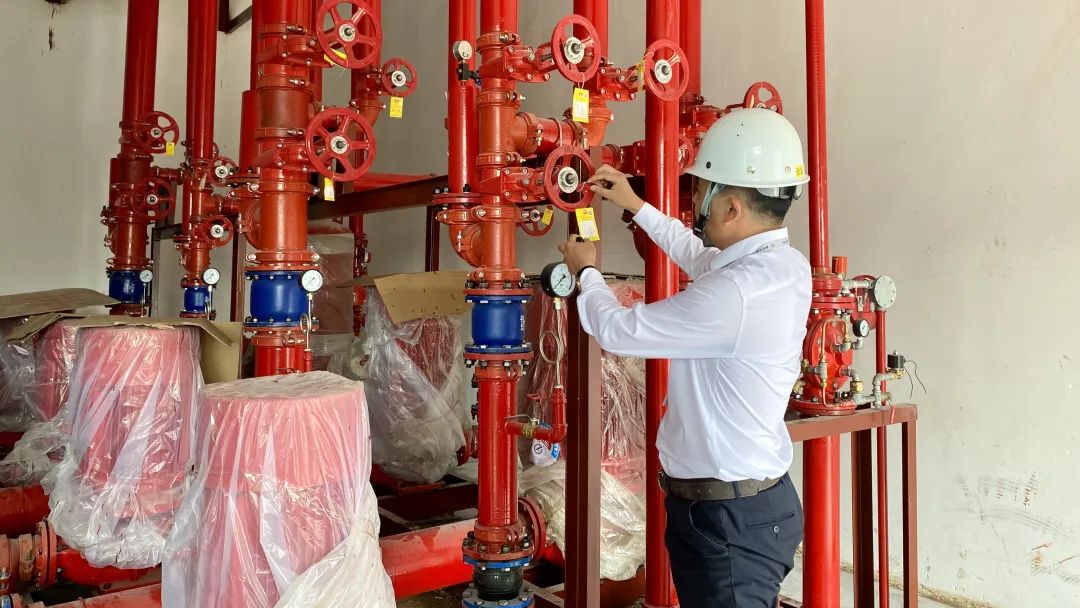 跟著張超在項目部走了一圈,他細心地介紹項目建設情況、設備安裝情況及功能區域劃分。他與施工隊負責人核實:“水泵邊這是塑料管還是玻璃管?”、“消火栓的塑料薄膜你們到時候要拆掉。”、“外墻上面的管道這么長影響美觀”等等,他是“實干家”的代名詞。