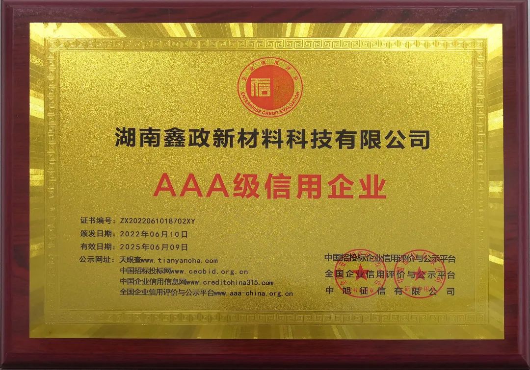 瀏覽次數:941經全國企業信用評價與公示平臺等部門嚴格審核,近日,湖南鑫政新材料科技有限公司榮獲中國企業信用評定最高等級——“AAA級信用企業”認證。繼鑫政鋁業獲評AAA級信用認證并斬獲湖南省“守合同重信用企業”稱號后,鑫政集團在企業信用領域再添一項重磅榮譽。