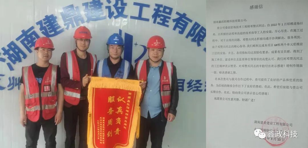 榮譽源自信任,信任源自擔當。錦旗既是對鑫政集團的鼓勵也是一種鞭策,集團未來將繼續(xù)以優(yōu)質服務貫穿始終,以客戶需求為導向,以客戶滿意為目標,進一步完善現(xiàn)場技術服務體系,提升技術服務人員專業(yè)能力,切實保障項目進度高效執(zhí)行,讓客戶樂享“鑫”服務,為客戶創(chuàng)造“鑫”價值,與客戶共創(chuàng)“鑫”輝煌。